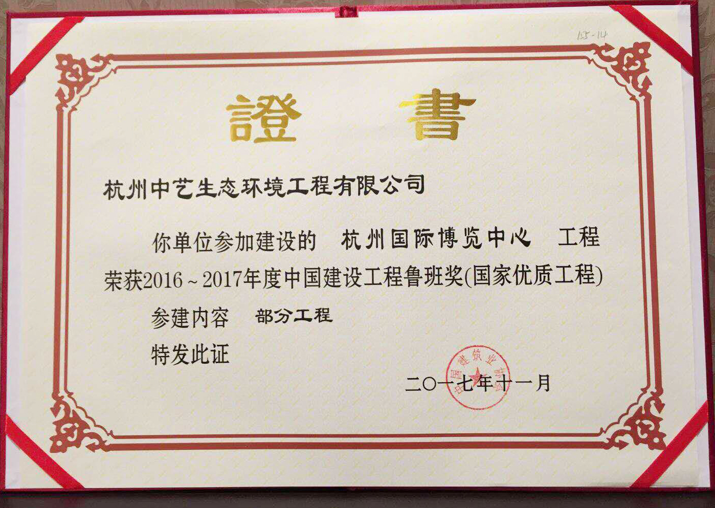 11月6日,中國建筑業(yè)協(xié)會在北京召開紀念“魯班獎”創(chuàng)立30周年暨2016~2017年度創(chuàng)精品工程經(jīng)驗交流會。由太陽成集團tyc環(huán)境全資子公司——杭州中藝生態(tài)環(huán)境工程有限公司參建的杭州國際博覽中心項目喜獲中國建設(shè)工程質(zhì)量最高獎———中國建設(shè)工程魯班獎(國家優(yōu)質(zhì)工程)。