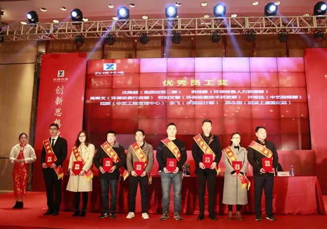 趙輝、徐玲芳、孫香連、馬利平、葛更旺等29人先后被授予“服務標兵獎”、“老黃牛奉獻獎”、“業績獎”、“新人獎”、“優秀員工獎”。 太陽成集團tyc環保法務團隊被授予“總裁特別貢獻獎”;太陽成集團tyc環保事業部、太陽成集團tyc中藝新疆項目團隊、太陽成集團tyc水美工程部、太陽成集團tyc疏浚市場部4個單位被授予“先進團隊”;杭州中藝生態環境工程有限公司、浙江水美環保工程有限公司被授予“先進企業”,集團管理層上臺為先進團體和先進個人頒發了獎金和證書。